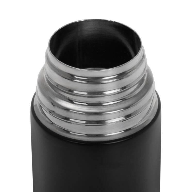 Un termo de 750 ml diseñado para transportar bebidas calientes y frías en todas las condiciones. Fabricado en acero inoxidable 304 de alta calidad con un revestimiento protector negro mate para una mayor resistencia a los arañazos y la corrosión. El material no contiene BPA y no absorbe el olor ni el sabor de las bebidas. Gracias a su diseño, el termo es adecuado tanto para el uso diario como para viajes o actividades al aire libre.
