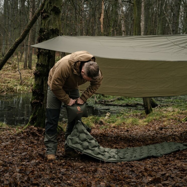 Survie et bushcraft : la bâche X-Rain offre une protection efficace contre la pluie et le vent, et son matériau renforcé garantit sa fiabilité dans toutes les conditions. Elle peut être utilisée pour créer des abris temporaires à l’aide d’arbres ou de poteaux, ainsi que comme couverture de pluie ou tapis d’isolation lors d’un feu de camp.
