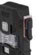 Sous le boîtier se trouve une lampe de poche à LED, qui offre trois modes de fonctionnement : élevé, moyen et clignotant. Vous pouvez ainsi régler l’intensité de la lumière en fonction de vos besoins, qu’il s’agisse de l’éclairage de la route ou de la signalisation d’urgence. Les modes sont activés à l’aide d’un bouton situé à l’avant du boîtier, qui active également les LED de signalisation lorsque le couvercle est ouvert. Il est également possible de changer la couleur du rétroéclairage, ce qui augmente la visibilité du briquet après la tombée de la nuit. Un porte-langue et une ouverture pour porte-clés permettent de le transporter facilement et d’éviter de le perdre lors d’activités de plein air.