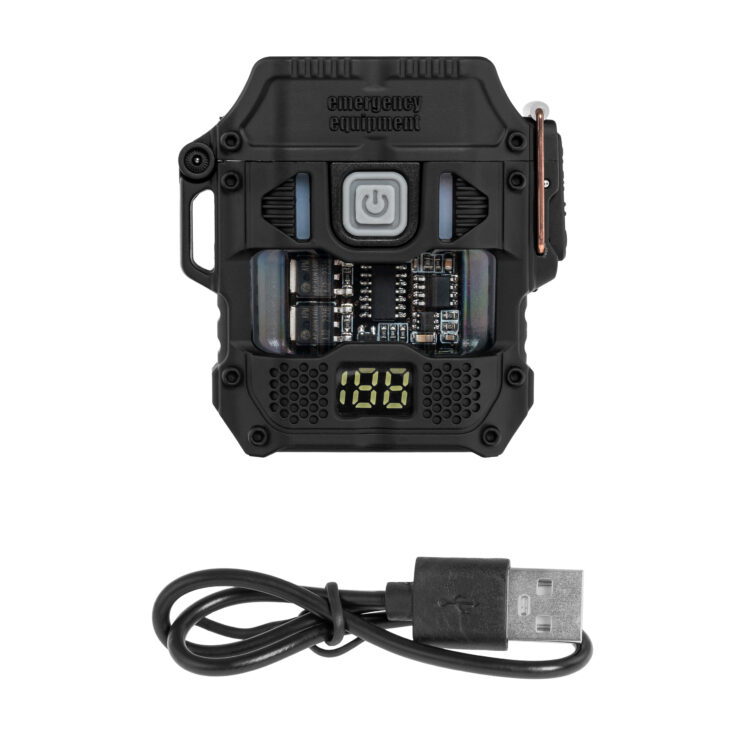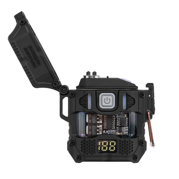 Deux arcs de plasma entrecroisés, produits par quatre électrodes situées sur la tête, sont responsables du fonctionnement du briquet. Cette conception garantit une inflammation rapide et efficace du matériau, quelles que soient les conditions météorologiques. Le boîtier est en plastique incassable, ce qui protège les composants internes des chocs et de la saleté. La surface mate empêche le briquet de glisser dans la main et assure une bonne prise en main, même dans des conditions humides, ce qui est important lorsque l’on travaille sur le terrain ou sous la pluie.