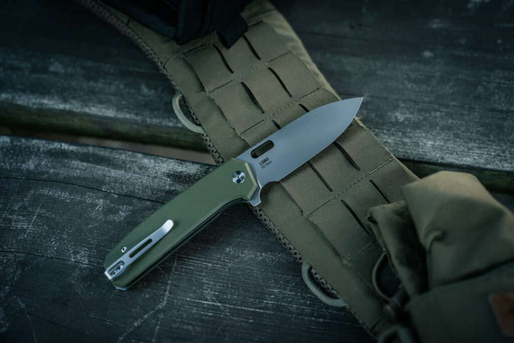 Le manche en G10 laminé se distingue par sa durabilité et sa résistance aux intempéries. La surface texturée du manche assure une prise en main sûre et stable, même sous la pluie, et minimise le risque de glissement de l’outil. La forme du manche a été adaptée à la ligne naturelle de la main, ce qui permet d’utiliser le couteau confortablement et avec précision pendant de longues périodes. En outre, le modèle Lobo est équipé d’un clip à ressort qui permet de l’accrocher à la ceinture, à la poche ou à l’équipement, ce qui facilite le transport et permet d’accéder rapidement au couteau en cas de besoin.