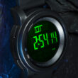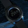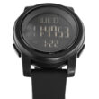 Le modèle utilise un bracelet noir en silicone souple, résistant à l’humidité, à la transpiration et aux changements de température. Le matériau ne cause aucune gêne lors d’un port prolongé et convient aussi bien à un usage urbain qu’à une utilisation en extérieur. La longueur réglable permet un ajustement précis au poignet et un positionnement stable de la montre.