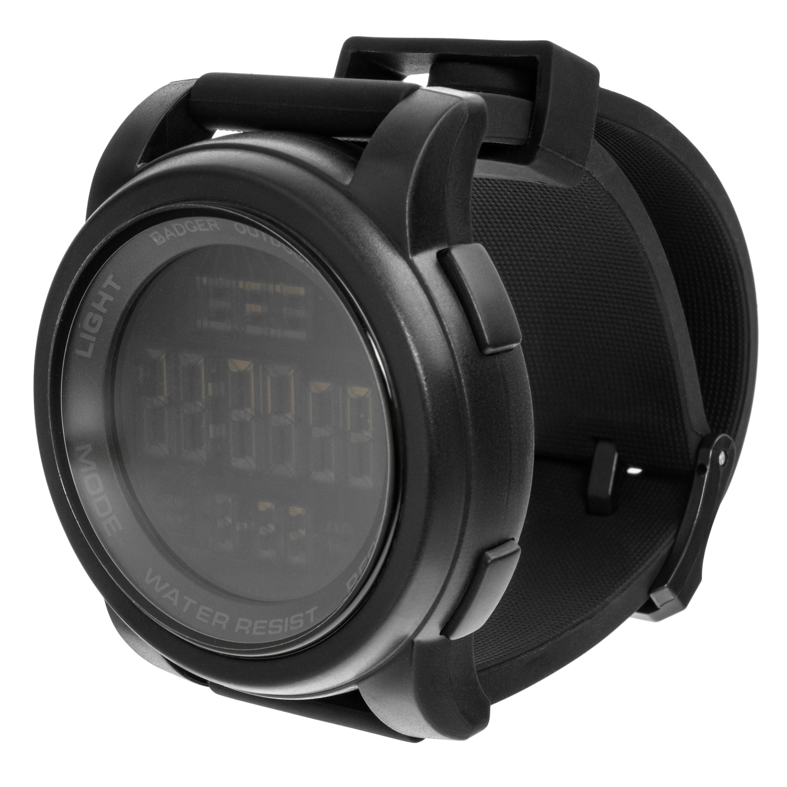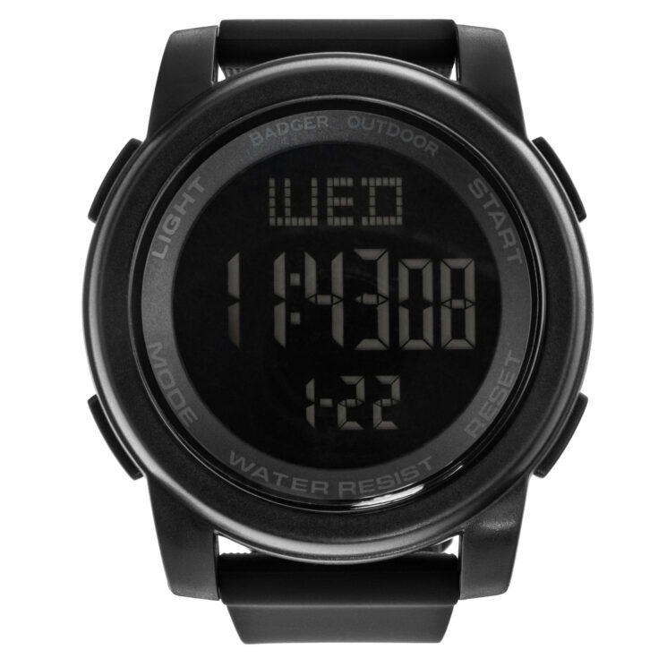 Le boîtier est fabriqué en polycarbonate durable, caractérisé par son faible poids et sa bonne résistance mécanique. Ce matériau résiste bien à une utilisation quotidienne et aux conditions sur le terrain. Le cadran noir est protégé par un verre offrant une résistance accrue aux rayures, ce qui augmente la durabilité de l’affichage.