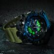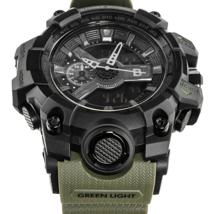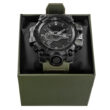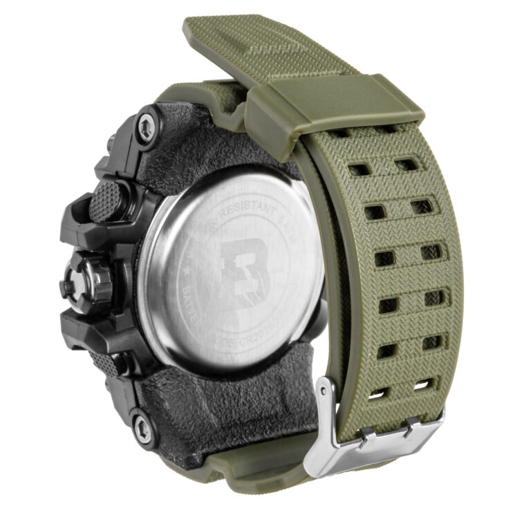 Le modèle est doté d’un bracelet vert en polyuréthane, un matériau résistant à l’humidité, à la transpiration et aux variations de température. Le bracelet ne cause aucune gêne, même en cas d’utilisation prolongée, et convient aussi bien à un usage urbain qu’à une utilisation en extérieur. Grâce à son réglage en longueur, il s’adapte précisément au poignet et garantit un maintien stable de la montre.