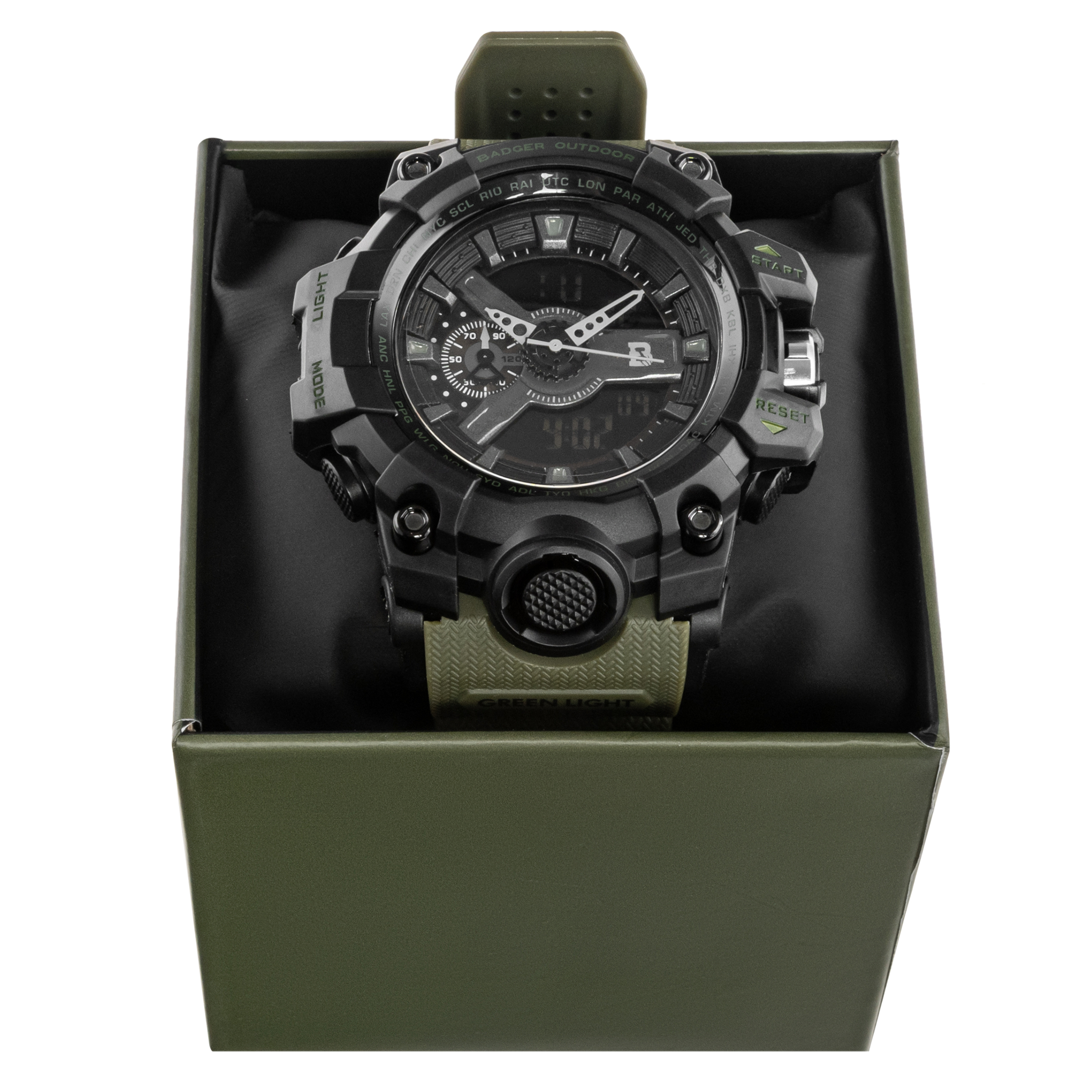Une montre-bracelet universelle avec cadran numérique-analogique, conçue pour les utilisateurs qui souhaitent allier un affichage classique de l'heure à la fonctionnalité d'une montre électronique moderne. Son boîtier léger et robuste fait de ce modèle un compagnon pratique pour la vie quotidienne et les activités de plein air. La montre dispose de fonctions utiles telles qu'un chronomètre, une alarme et un éclairage LED, qui augmentent sa polyvalence dans différentes conditions.