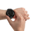 La montre est équipée d’un bracelet noir en polyuréthane, résistant à l’humidité, à la transpiration et aux changements de température. Le matériau n’absorbe pas l’eau, ce qui facilite le nettoyage et améliore le confort pendant l’activité. Le réglage de la longueur permet un ajustement précis au poignet, et la conception du bracelet limite le glissement de la montre pendant le mouvement.
