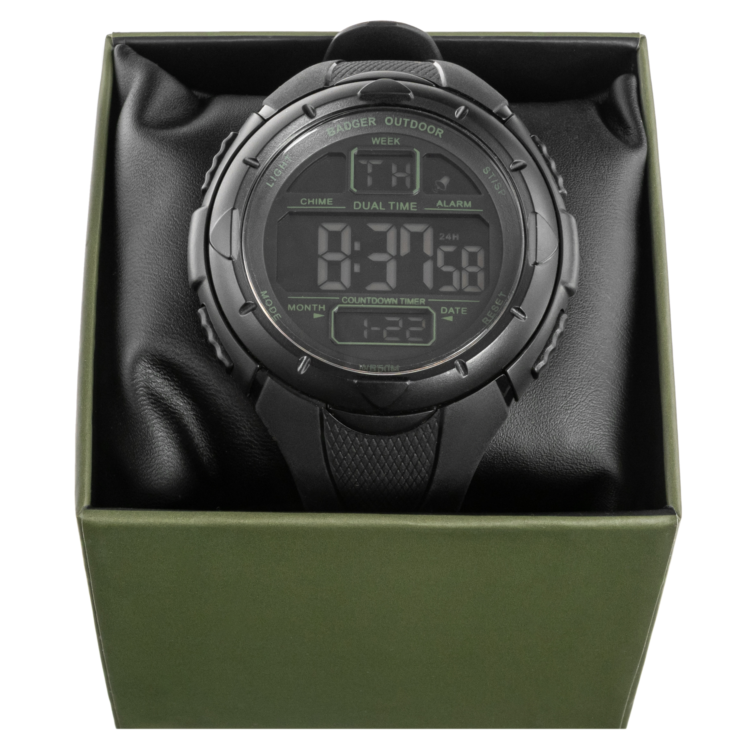Montre électronique avec affichage à 12 chiffres, logée dans un boîtier léger mais robuste, conçue pour un usage quotidien et le travail sur le terrain. C'est un modèle destiné aux personnes qui attendent de leur montre plus que l'indication de l'heure : il offre un ensemble de fonctions pratiques, telles qu'un chronomètre, un minuteur, une alarme et un rétroéclairage EL, qui améliorent le confort d'utilisation dans diverses situations.