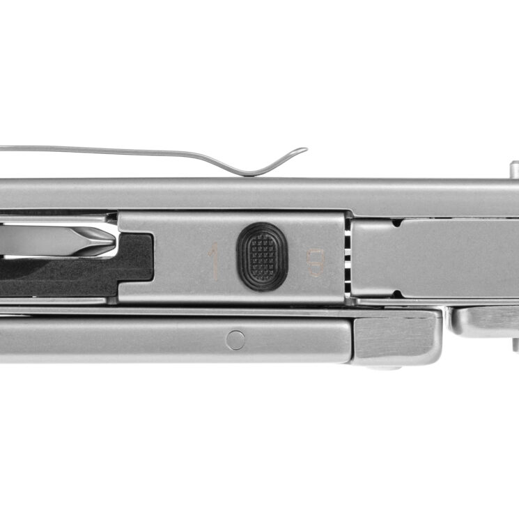Le multitool est doté d’une lame profilée Drop-Point de 59 mm de long, qui se déplie par un trou de pouce pour une utilisation d’une seule main. La forme de la lame garantit des coupes précises et la durabilité du tranchant. Tous les outils sont sécurisés par des verrous pour une plus grande sécurité d’utilisation – les composants principaux sont verrouillés par le mécanisme Axis Lock et le tournevis Phillips par le mécanisme Liner Lock. Le multitool reste ainsi utilisable en toute sécurité, même lors de travaux intensifs.
