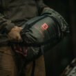 Le sac de couchage est équipé d’une fermeture éclair située sur le côté gauche, ce qui permet de l’utiliser aussi bien sous la tente que sur le terrain. Sa longueur – 225 cm – et sa largeur – 80 cm – garantissent le confort des utilisateurs de différentes tailles. L’extérieur de couleur olive se fond très bien dans l’environnement, tandis que la doublure orange inspirée des vestes militaires MA1 ajoute du contraste et augmente la visibilité dans les situations d’urgence.