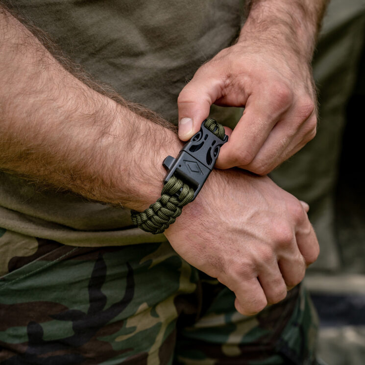 Survival i bushcraft: Paracord z bransoletki może posłużyć do troczenia ekwipunku, budowy schronienia, zawieszenia tarpów lub stworzenia prowizorycznego hamaka. Długość 3,6 metra pozwala na wiele awaryjnych zastosowań, a zintegrowane krzesiwo umożliwia szybkie rozpalenie ognia w terenie. Gwizdek ratunkowy przydaje się do wezwania pomocy lub sygnalizacji swojej pozycji.