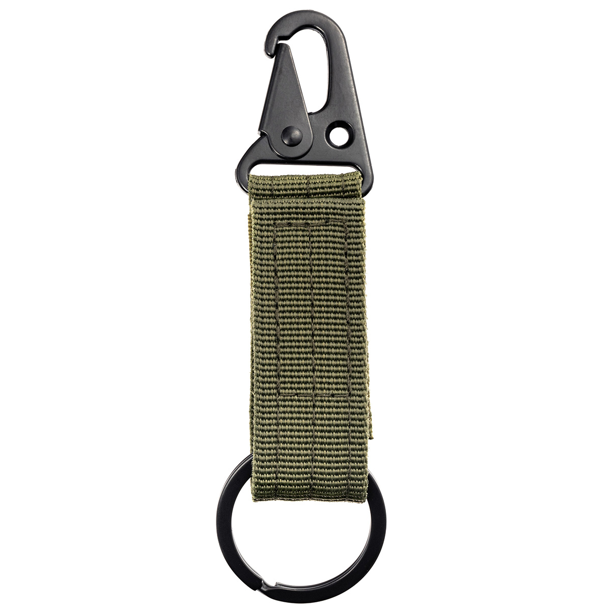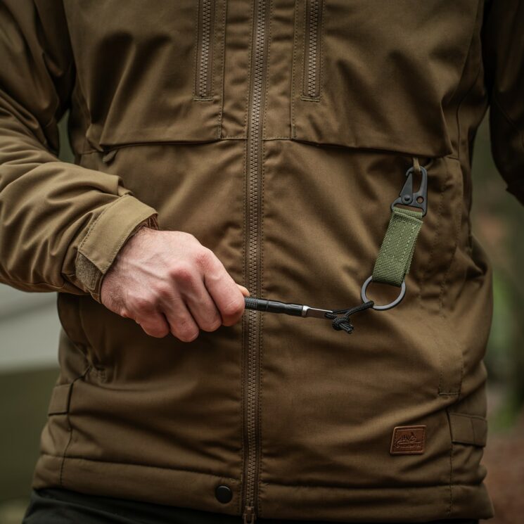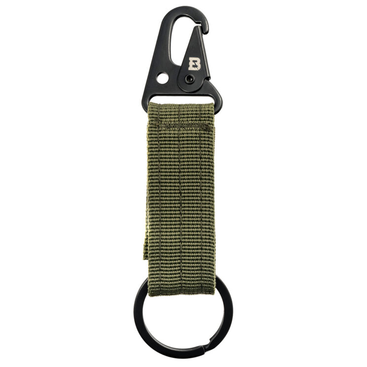 Na jednym końcu breloka umieszczono solidny karabińczyk, umożliwiający szybkie przypięcie do plecaka, torby, szlufki lub elementów oporządzenia. Drugi koniec zakończono metalowym kółkiem, które sprawdza się do przypięcia kluczy, scyzoryka czy multitoola. Dodatkowo brelok wyposażono w pasek z rzepem, pozwalający na przymocowanie do pasa o szerokości do 55 mm. Taka konstrukcja sprawia, że akcesorium jest nie tylko wygodne, ale i pewne w użytkowaniu nawet podczas dynamicznych działań w terenie.