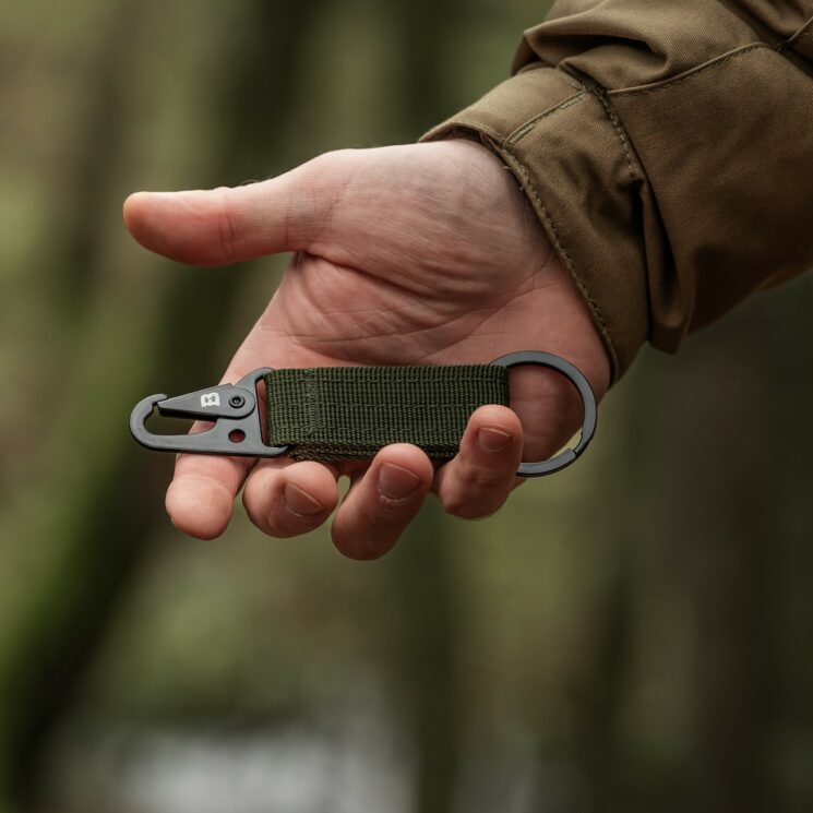 Aktywności survivalowe i outdoorowe: Brelok można przypiąć do plecaka, paska lub szlufki, aby mieć pod ręką klucze, scyzoryk lub inne drobne narzędzia. Solidne zapięcie i wytrzymały materiał zapewniają niezawodność nawet przy intensywnym użytkowaniu w wymagającym środowisku.