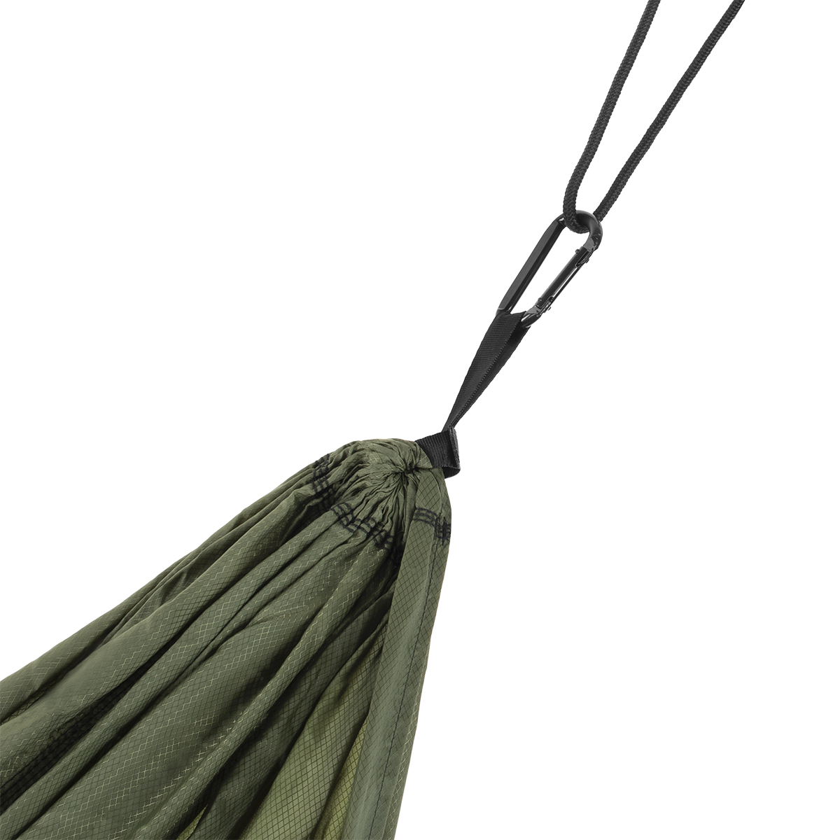 Camping i biwakowanie: Szybki system rozwieszania sprawia, że hamak można rozłożyć praktycznie wszędzie. Duża powierzchnia leżenia pozwala wygodnie odpocząć po dniu pełnym aktywności.