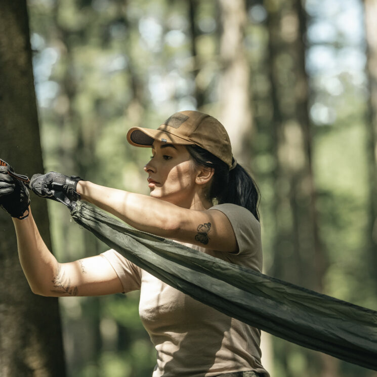 Szkolenia militarne i obozy przetrwania: Konstrukcja z możliwością włożenia karimaty pozwala uzyskać dodatkową izolację cieplną. Dzięki temu hamak można wykorzystywać w chłodniejszych warunkach, nie rezygnując z wygody.
