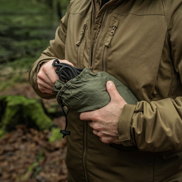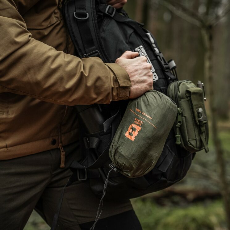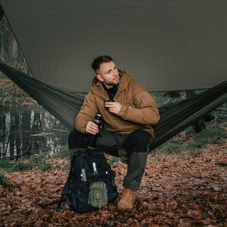 Szkolenia militarne i obozy przetrwania: Wkładanie karimaty między warstwy materiału poprawia izolację cieplną, dzięki czemu hamak sprawdza się także podczas noclegów w chłodniejszych porach roku.
