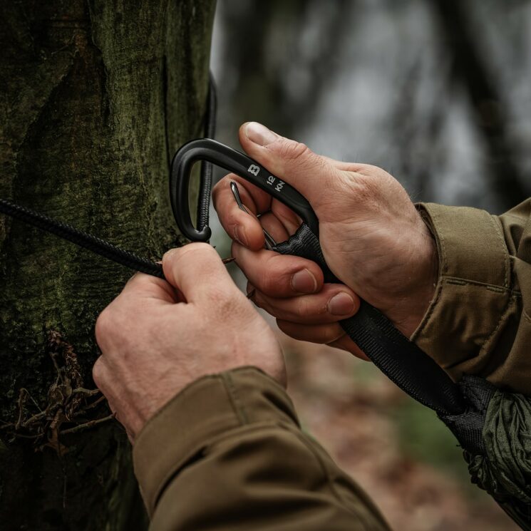 Survival i outdoor: Umożliwia przypięcie różnego sprzętu turystycznego, linek lub worków transportowych do gałęzi, namiotu czy plecaka. Sprawdza się podczas biwaków i wędrówek w terenie.