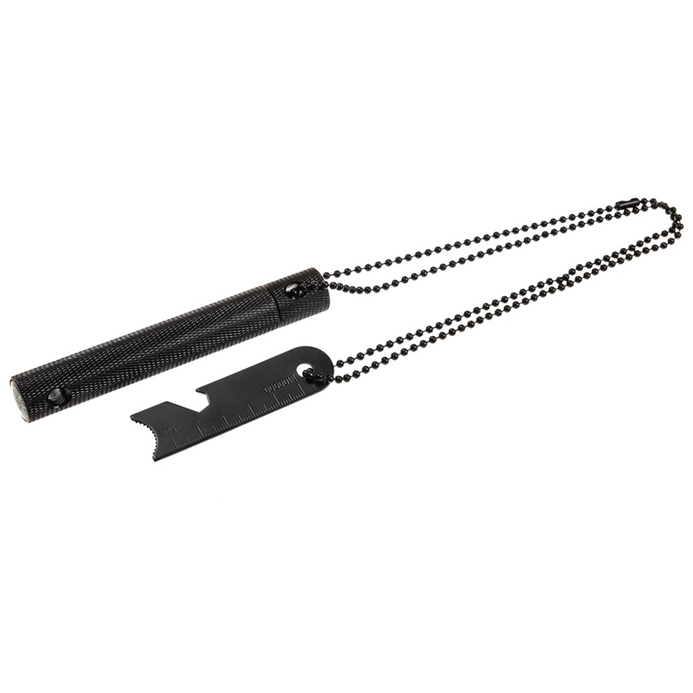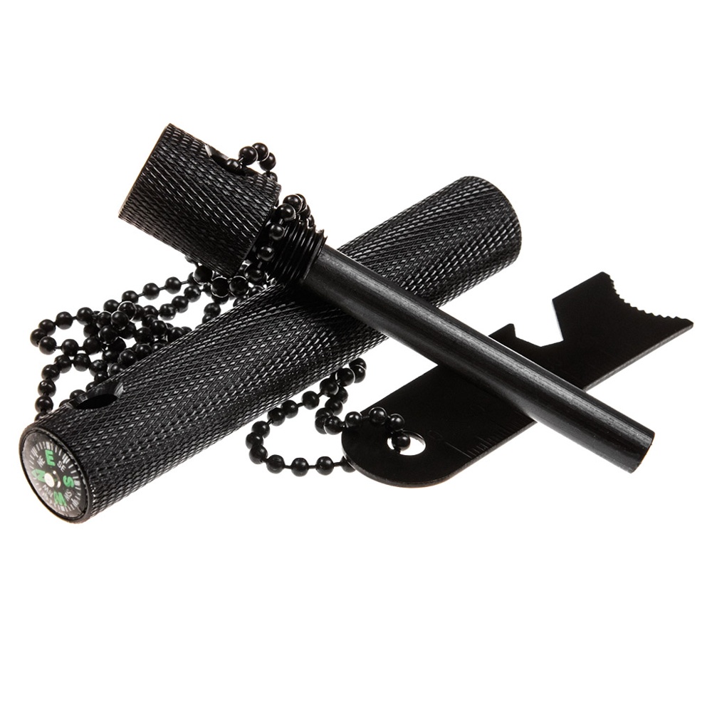 W zestawie znajduje się metalowy iskrownik w formie blaszki z ząbkowaną krawędzią, który umożliwia skuteczne generowanie iskier. Dodatkowo pełni on funkcję otwieracza do butelek i linijki, co zwiększa jego funkcjonalność w terenie. Krzesiwo zostało także wyposażone w wbudowany kompas, który może okazać się przydatny podczas orientacji w terenie. Dzięki temu zestaw Multifire łączy w sobie kilka praktycznych narzędzi w jednym lekkim i poręcznym akcesorium.