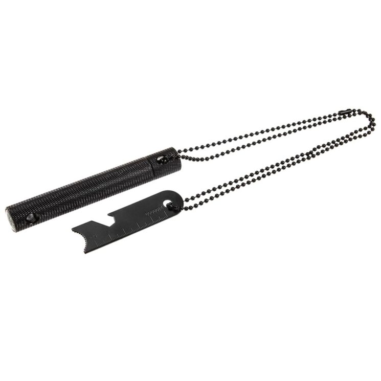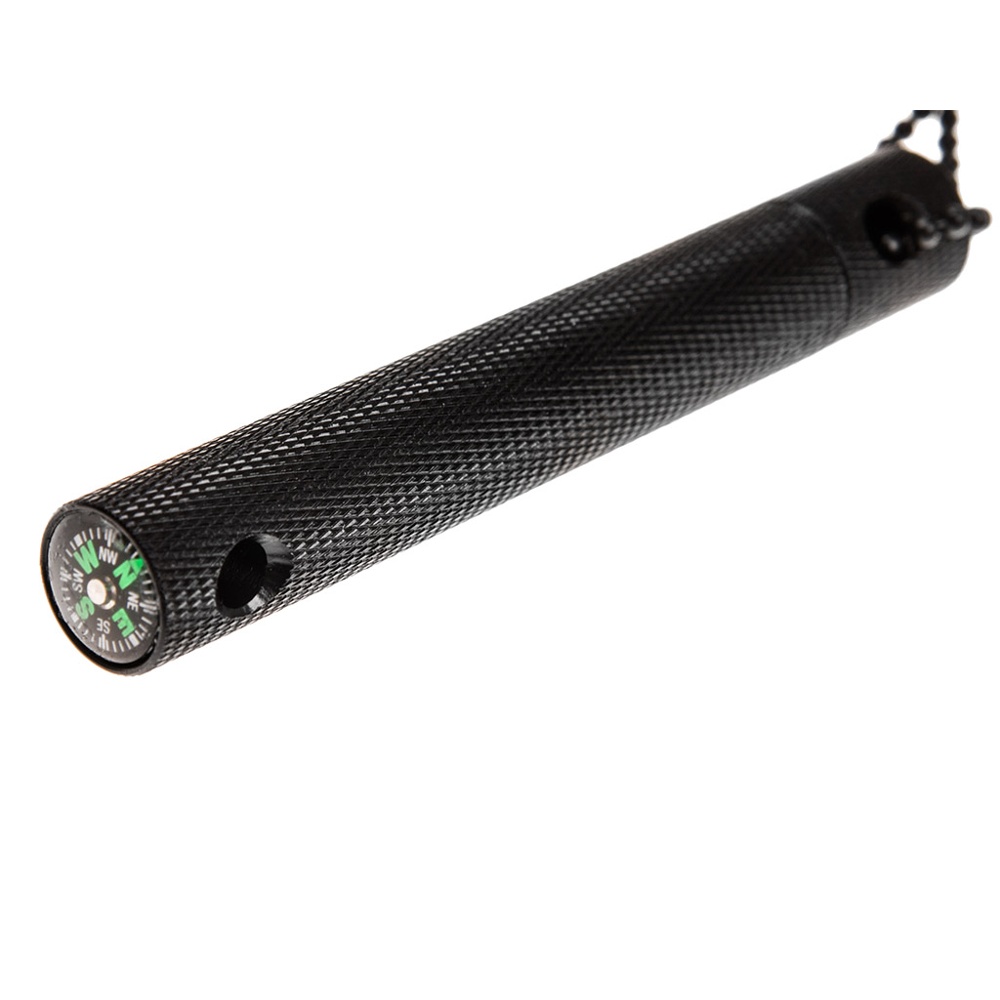Konstrukcja umożliwia schowanie pręta w obudowie, co zapobiega jego zabrudzeniu, złamaniu lub zużyciu podczas transportu. Dzięki temu krzesiwo zajmuje mniej miejsca i jest łatwiejsze w przenoszeniu. Obudowa dobrze leży w dłoni, a teksturowana powierzchnia zapewnia pewny chwyt, nawet w rękawicach lub przy wilgotnych dłoniach. Całość połączono z łańcuszkiem kulkowym, który pozwala zawiesić krzesiwo na szyi lub przytroczyć je do plecaka, aby zawsze było pod ręką.