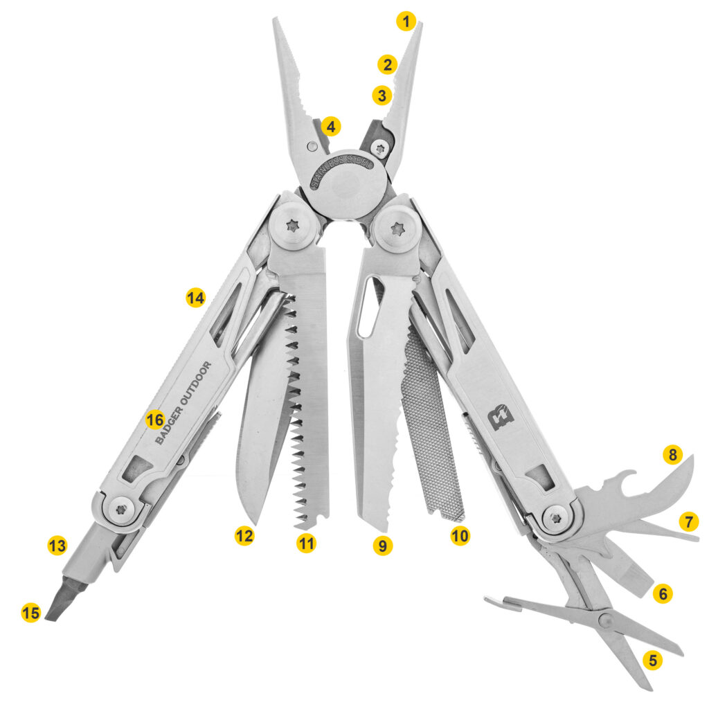 Multitool stworzony z myślą o codziennych pracach technicznych, drobnych naprawach w terenie i działaniach outdoorowych. Wykonany ze stali nierdzewnej 420 model Talon łączy w sobie aż 16 praktycznych narzędzi, w tym m.in. kombinerki z wymiennym przecinakiem do drutu, nóż oraz piłę. Całość uzupełnia wytrzymały nylonowy pokrowiec, który chroni sprzęt przed uszkodzeniami. Kompaktowe wymiary i niska waga sprawiają, że multitool można łatwo nosić w kieszeni, plecaku lub przy pasie. Multitoole marki Badger Outdoor objęte są 10-letnią gwarancją.