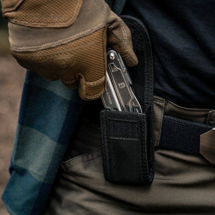 W zestawie znajduje się nylonowa kaburao wysokiej odporności na prztarcia, przystosowana do noszenia multitoola na pasie o szerokości do 65 mm. Wnętrze etui zostało wyściełane miękkim materiałem, który chroni narzędzie przed porysowaniem i wstrząsami. Zapięcie na rzep umożliwia szybki dostęp do multitoola, a trwałe szwy zwiększają żywotność kabury nawet przy częstym użytkowaniu w terenie.