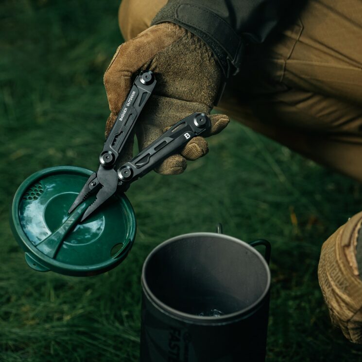 Biwakowanie i camping: Otwieracz do puszek i butelek sprawdzi się podczas przygotowywania posiłków na świeżym powietrzu. Multitool z zestawem śrubokrętów i kombinerkami ułatwi regulację mocowań, naprawy sprzętu kuchennego lub turystycznego, a także dopasowanie elementów namiotu.