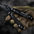 Narzędzia główne multitoola, takie jak ostrze noża oraz piła, można otworzyć przy pomocy otworu pod kciuk, co umożliwia ich wygodne rozkładanie jedną ręką. Blokada Liner Lock zabezpiecza ostrza w pozycji roboczej, zapobiegając ich przypadkowemu złożeniu. Mechanizm ten zapewnia nie tylko bezpieczeństwo, ale także stabilność podczas wykonywania precyzyjnych cięć i prac technicznych w terenie lub warsztacie.