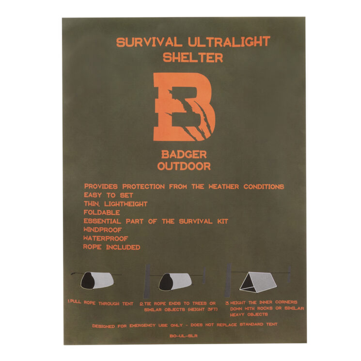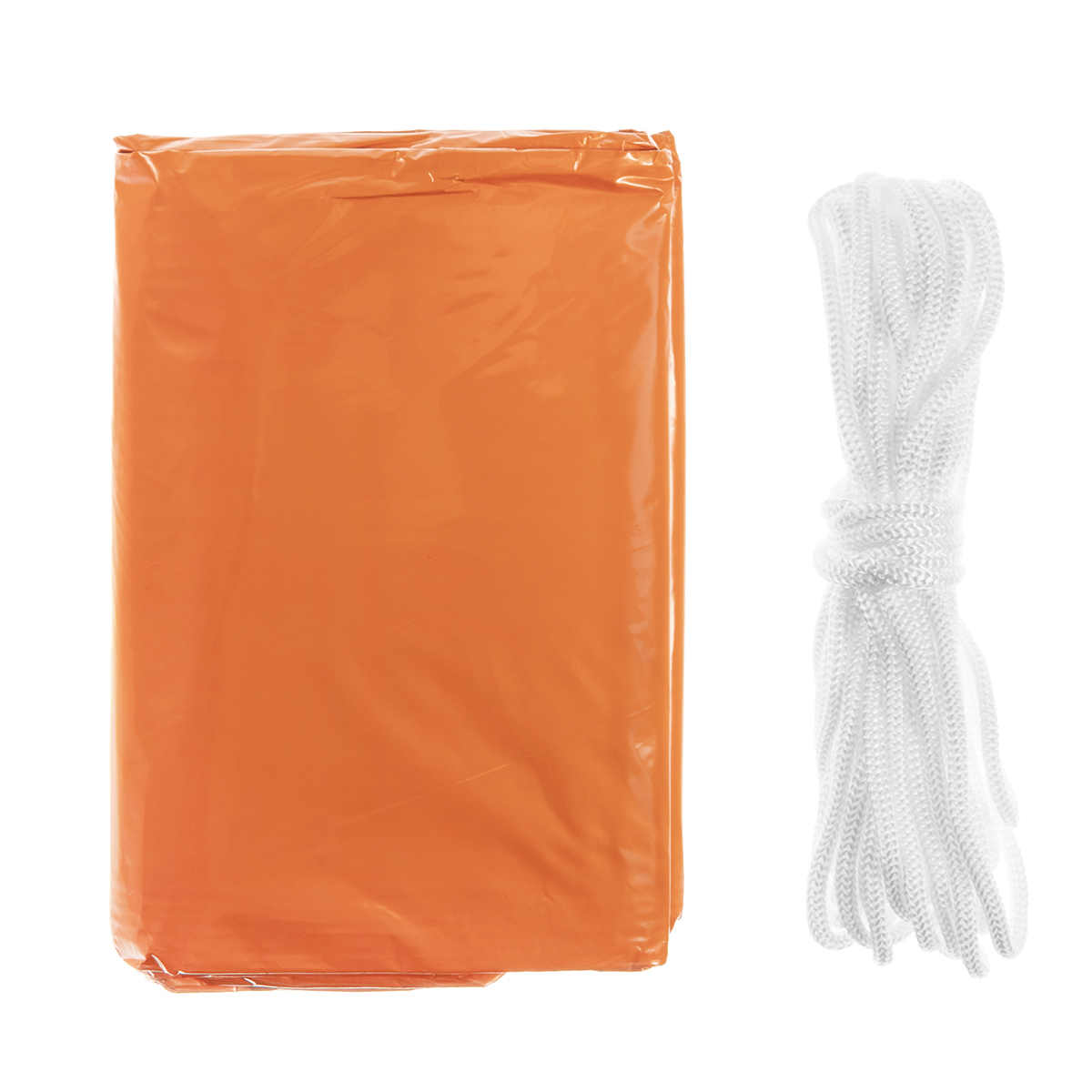 W skład zestawu wchodzi mocna lina o długości 7 metrów, umożliwiająca szybkie rozwieszenie schronienia, oraz worek transportowy ze ściągaczem, który chroni namiot przed zabrudzeniem i wilgocią. Całość można łatwo złożyć i spakować, dzięki czemu sprzęt jest zawsze gotowy do użycia w sytuacjach awaryjnych. Zestaw świetnie sprawdzi się w terenie, podczas biwaków, wędrówek i wypraw survivalowych.