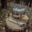 Komplet zawiera wszystkie podstawowe elementy, które umożliwiają przygotowanie i spożycie posiłków w terenie. Każdy element zestawu został zaprojektowany z myślą o maksymalnej wygodzie użytkowania oraz trwałości konstrukcji.