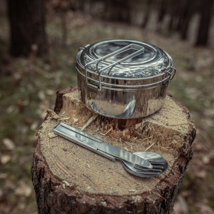 Camping i biwakowanie: Niezbędnik ułatwia przygotowywanie i spożywanie posiłków na świeżym powietrzu. Dzięki pełnemu zestawowi sztućców pozwala komfortowo zjeść zarówno gorący, jak i zimny posiłek podczas pobytu w terenie.