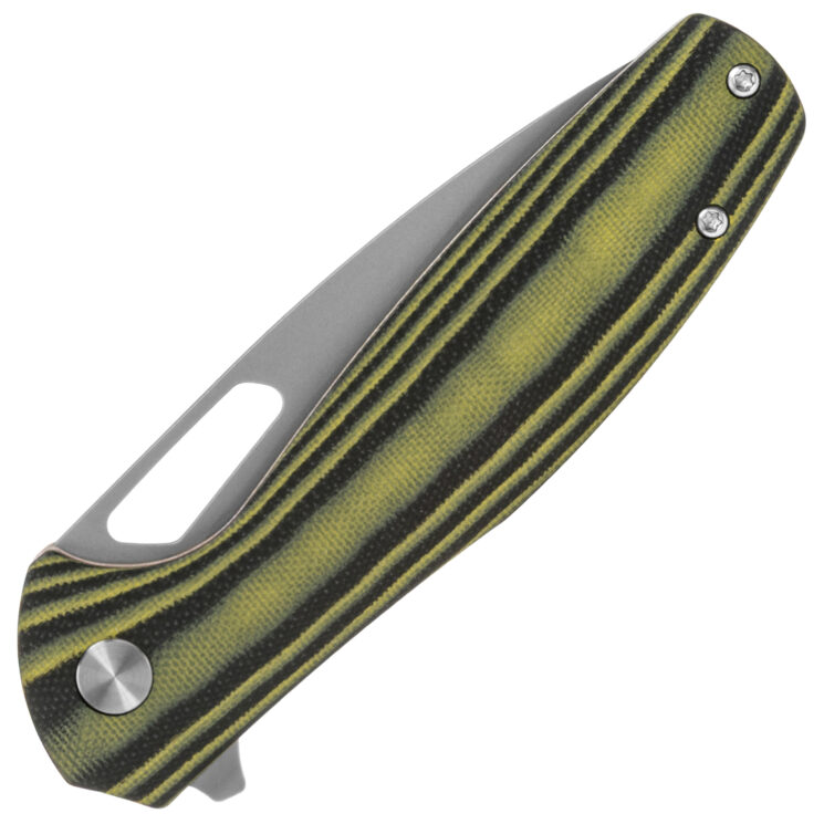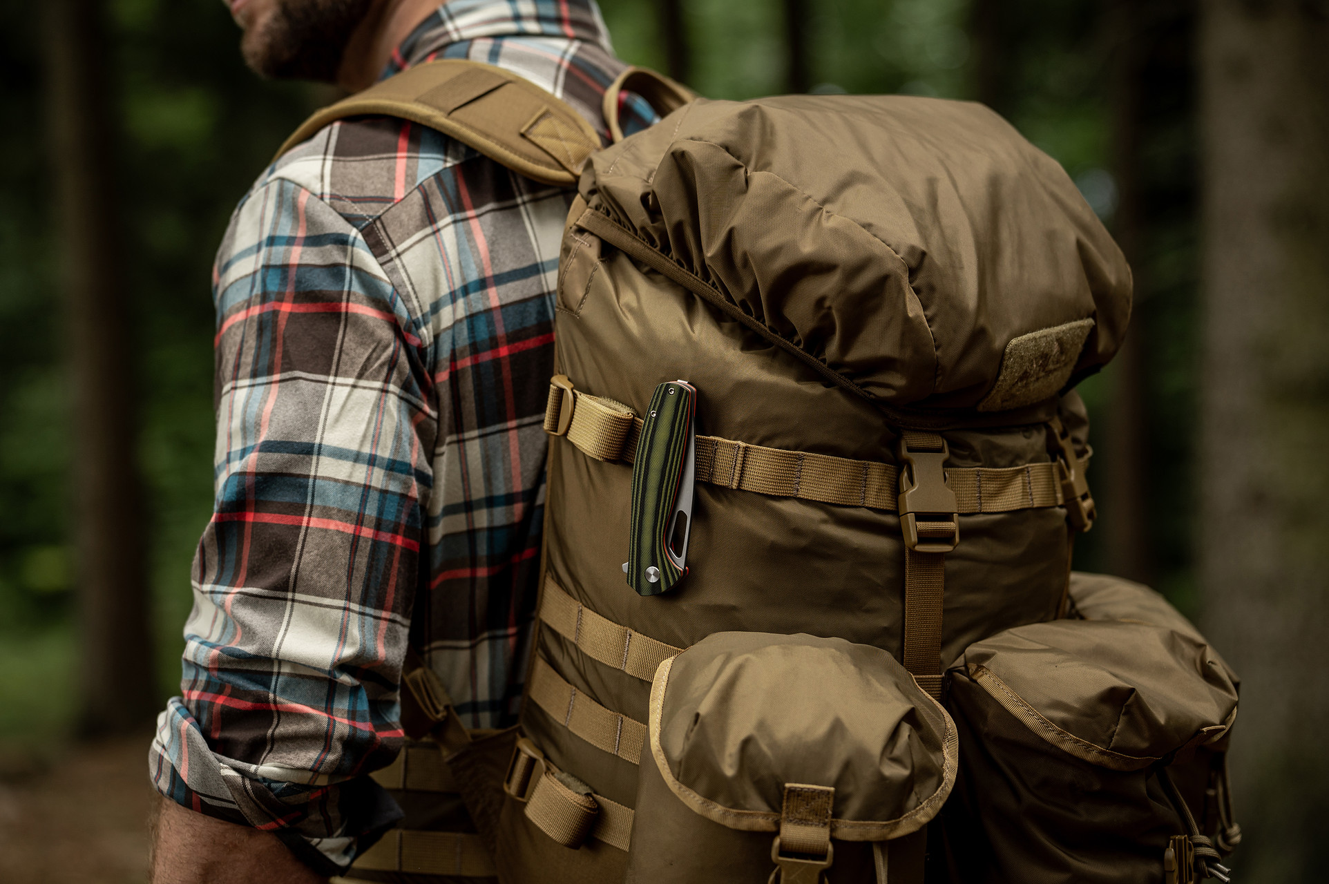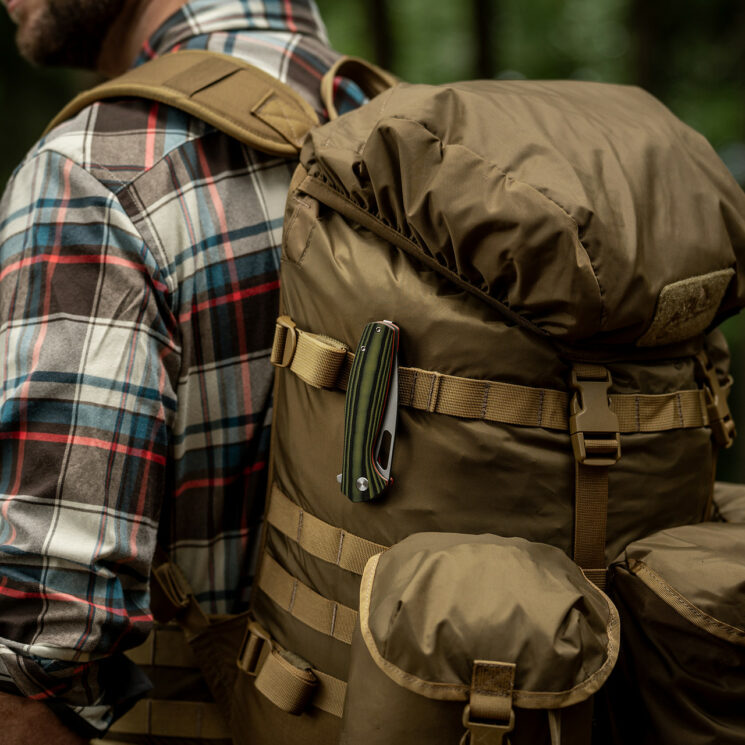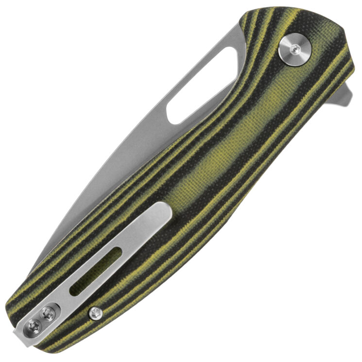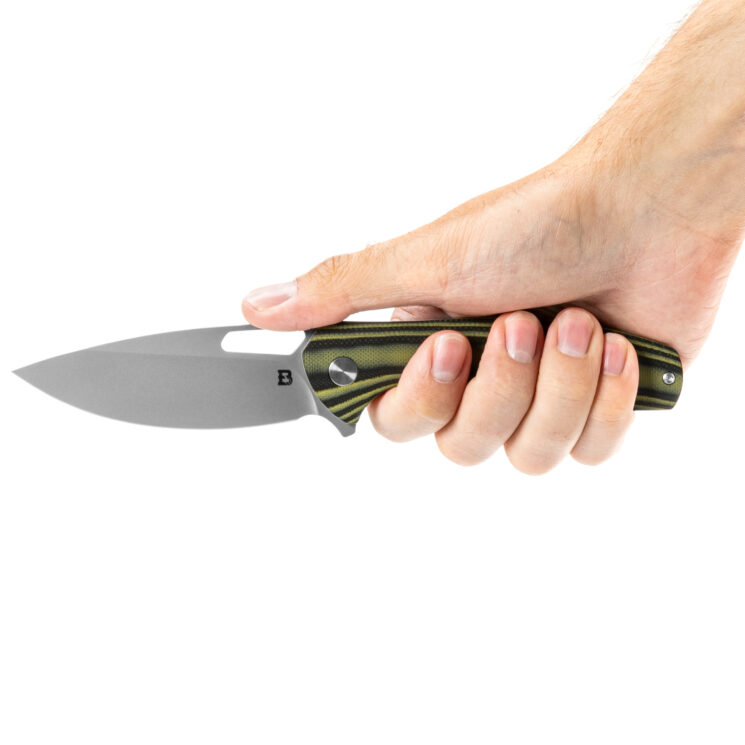 Rękojeść wykonano z laminatu G10 o charakterystycznej teksturowanej powierzchni, która zapewnia optymalną przyczepność nawet w wilgotnych warunkach. Dzięki ergonomicznemu profilowi rękojeści nóż dobrze leży w dłoni, co przekłada się na stabilność oraz bezpieczeństwo podczas pracy. Dodatkowo nóż wyposażono w sprężysty, jednostronny klips umożliwiający pewne przypięcie noża do pasa, krawędzi kieszeni lub elementów ekwipunku, co pozwala na szybki dostęp w razie potrzeby.