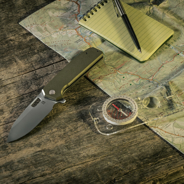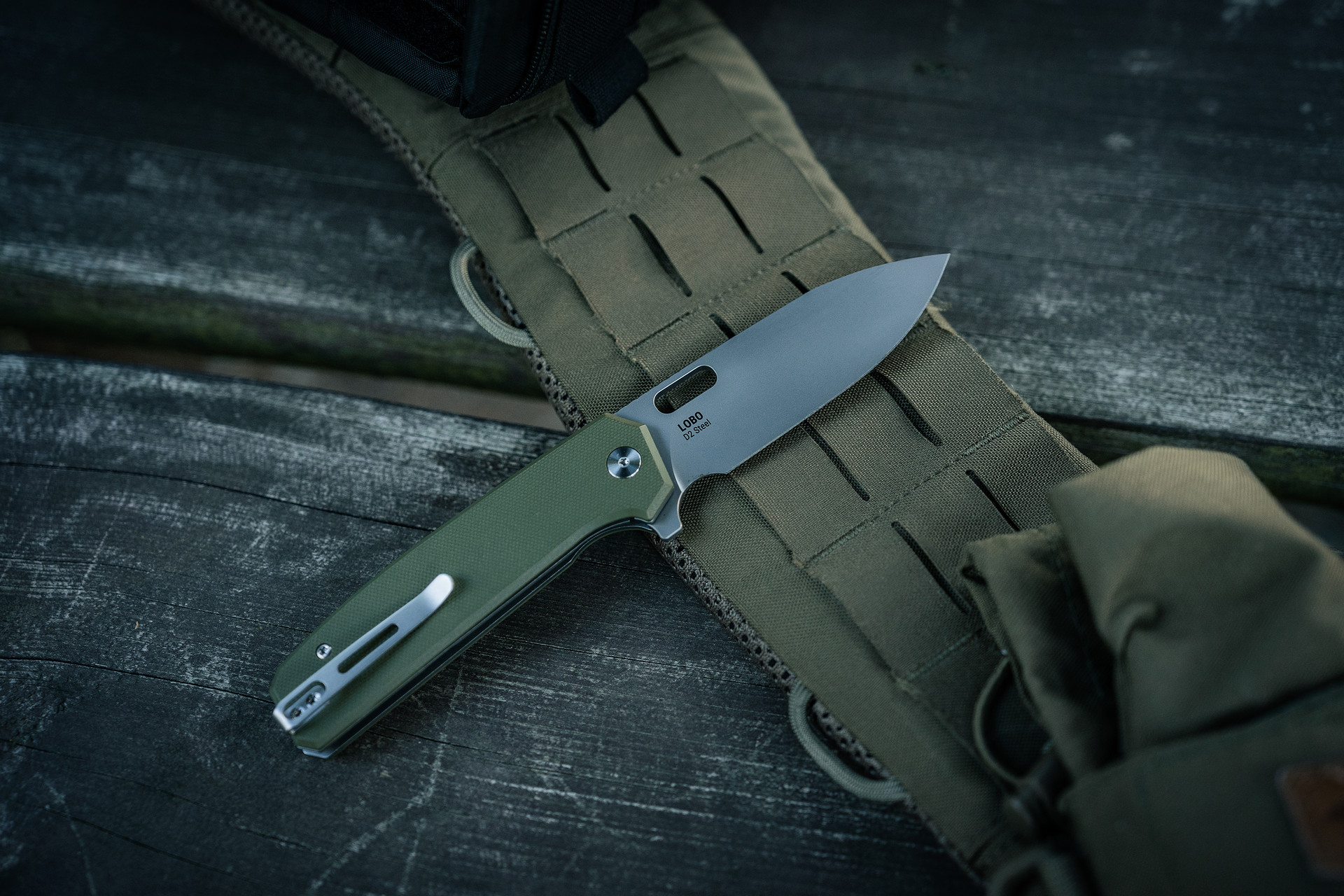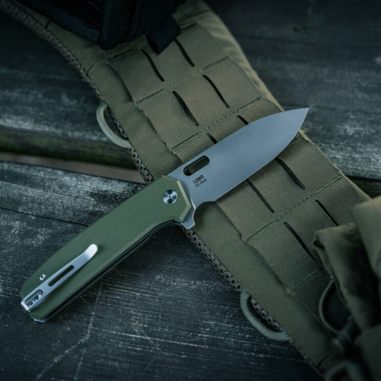 Rękojeść wykonana z laminatu G10 wyróżnia się trwałością oraz odpornością na warunki atmosferyczne. Teksturowana powierzchnia okładzin zapewnia pewny, stabilny chwyt nawet podczas deszczu, minimalizując ryzyko wyślizgnięcia się narzędzia. Kształt rękojeści dopasowano do naturalnej linii dłoni, co pozwala na wygodne i precyzyjne operowanie nożem przez długi czas. Dodatkowo model Lobo został wyposażony w sprężysty klips umożliwiający przypięcie go do paska, kieszeni lub oporządzenia, co ułatwia jego transport i zapewnia szybki dostęp do noża w razie potrzeby.