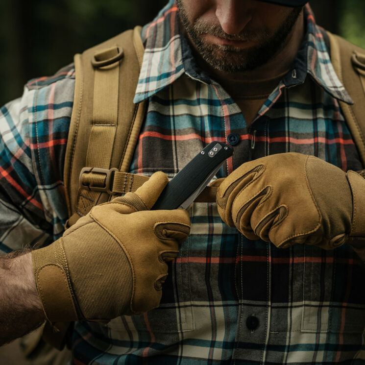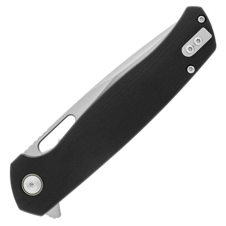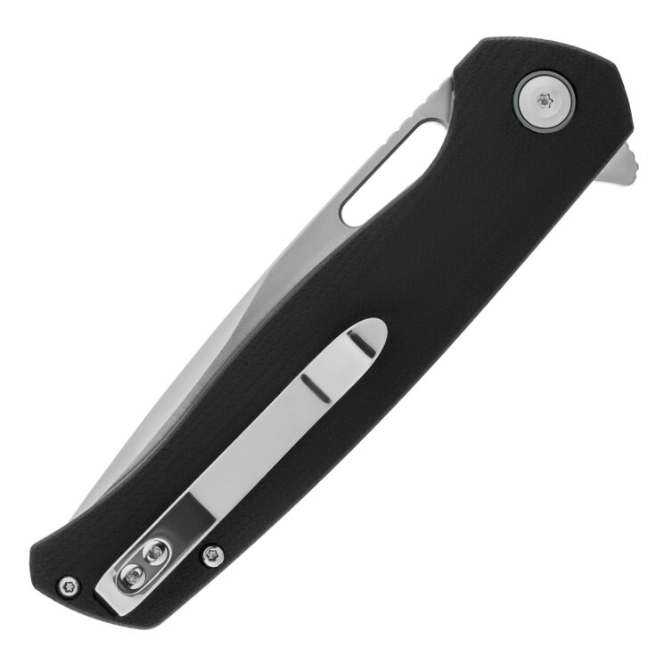 Rękojeść noża wykonano z czarnego laminatu G10, odpornego na uszkodzenia mechaniczne, wilgoć oraz zmiany temperatury. Teksturowana powierzchnia zapewnia dobrą przyczepność, co przekłada się na pewny i stabilny chwyt nawet w trudnych warunkach pogodowych. Rękojeść o ergonomicznym kształcie dobrze dopasowuje się do dłoni, redukując zmęczenie przy dłuższym użytkowaniu. Model Orix został wyposażony w przekładalny sprężysty klips, który umożliwia noszenie noża zarówno po lewej, jak i po prawej stronie, ułatwiając szybki dostęp niezależnie od preferencji użytkownika.