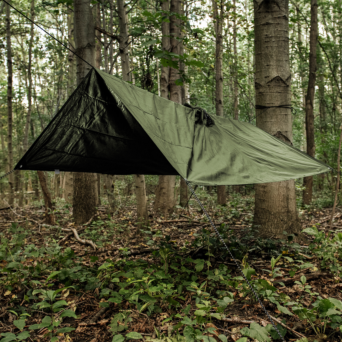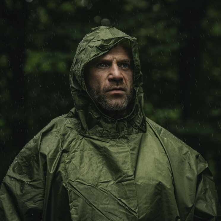 Wyprawy survivalowe i bushcraft: Ponczo po rozłożeniu może posłużyć jako tymczasowy dach lub prowizoryczne schronienie chroniące przed deszczem, wiatrem i wilgocią. W połączeniu z drugim ponczem pozwoli stworzyć większy tarp lub osłonę obozową.
