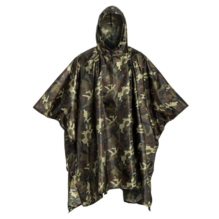 Wyprawy survivalowe i bushcraft: Ponczo po rozłożeniu może posłużyć jako tymczasowy dach lub prowizoryczne schronienie chroniące przed deszczem, wiatrem i wilgocią. W połączeniu z drugim ponczem pozwoli stworzyć większy tarp lub osłonę obozową.