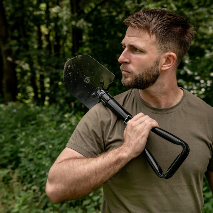 Działania taktyczne: Saperka sprawdza się przy budowie prostych umocnień, tworzeniu niewielkich okopów, zakopywaniu wyposażenia lub przygotowywaniu elementów maskujących.