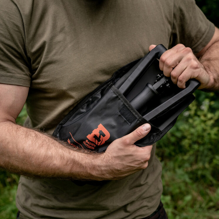 Składany system konstrukcji umożliwia szybkie złożenie narzędzia i zmniejszenie jego długości z pełnych 58,5 cm do jedynie 24,5 cm. W takiej formie saperka zajmuje minimalną ilość miejsca, dzięki czemu można ją schować do plecaka, schowka w aucie lub kieszeni bocznej ekwipunku. Po złożeniu mieści się w dołączonym pokrowcu, co ułatwia jej transport i przechowywanie.