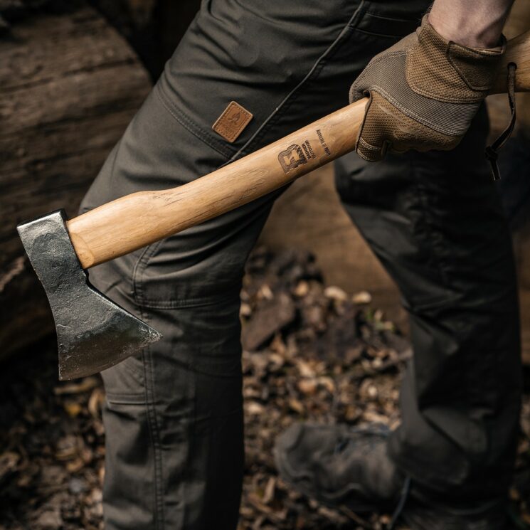 Sytuacje awaryjne: Narzędzie to może służyć do usuwania przeszkód, rozłupywania desek, cięcia drewna lub awaryjnego otwierania drogi. Solidna stalowa głowica i drewniana rękojeść zapewniają trwałość oraz pewność działania nawet w najtrudniejszych warunkach terenowych, co czyni ją niezastąpionym elementem wyposażenia ratunkowego lub survivalowego.