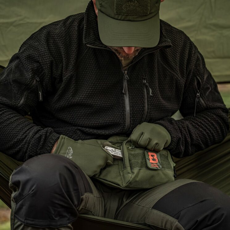 Podczas działań taktycznych: Może pełnić rolę uzupełnienia oporządzenia. Duża liczba kieszeni oraz możliwość montażu na pasie, kamizelce lub plecaku ułatwiają przechowywanie niezbędnych narzędzi, amunicji lub sprzętu medycznego. Solidne zamki i regulowany pas zapewniają wygodę w każdych warunkach operacyjnych.