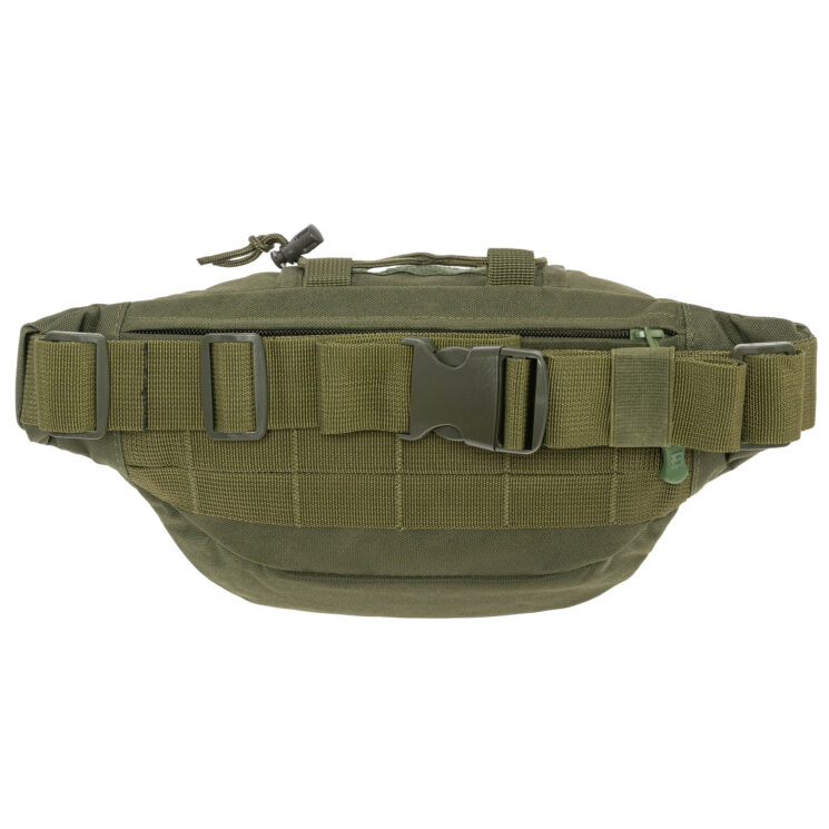 Torba została wyposażona w regulowany pas biodrowy o długości maksymalnej 140 cm, który umożliwia dopasowanie długości do sylwetki użytkownika, zapewniając wygodę noszenia. Klamra typu fastex pozwala na szybkie zapięcie lub wypięcie torby jedną ręką, co jest szczególnie przydatne w dynamicznych sytuacjach. Szeroki pas zapewnia stabilność nawet podczas ruchu, a dzięki przemyślanemu systemowi mocowania torbę można nosić zarówno na biodrach, jak i przewieszoną przez ramię. Wytrzymałe przeszycia w newralgicznych miejscach zwiększają trwałość konstrukcji.