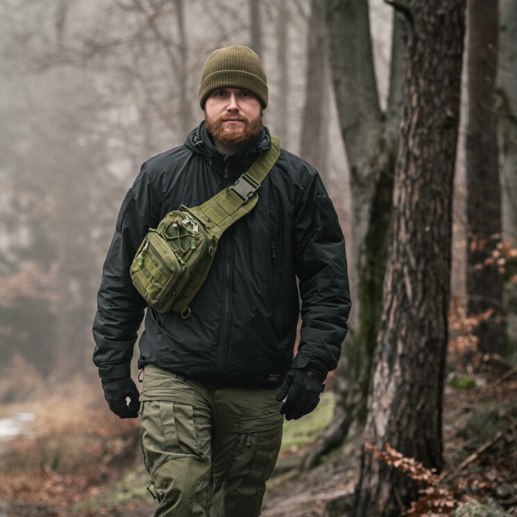 Outdoor i survival: Torba umożliwia zabranie najpotrzebniejszych przedmiotów podczas krótkich wypraw lub wędrówek. Dzięki solidnym D-ringom można do niej przypiąć karabinki, bidon czy latarkę, a przemyślany układ kieszeni pomaga utrzymać porządek w ekwipunku. Jednoszelkowy system nośny pozwala na szybki obrót torby, co daje natychmiastowy dostęp do map, prowiantu czy narzędzi bez przerywania marszu.