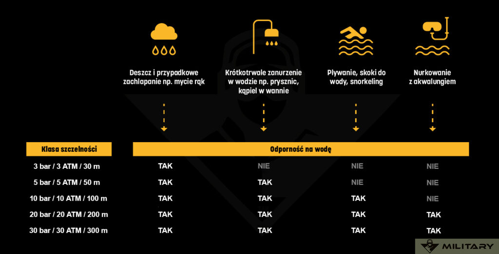 - wodoszczelność 5 ATM do codziennych zastosowań