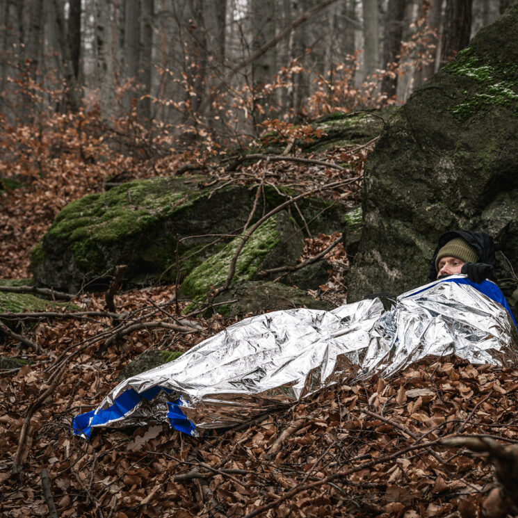 The model is made of durable, thin polypropylene film with a metalized silver surface, which effectively reflects thermal radiation, keeping the body temperature at the right level. The material is tear- and moisture-resistant, providing effective protection in harsh field conditions. The reflective surface increases the user’s visibility and makes it easier to locate in emergency situations.