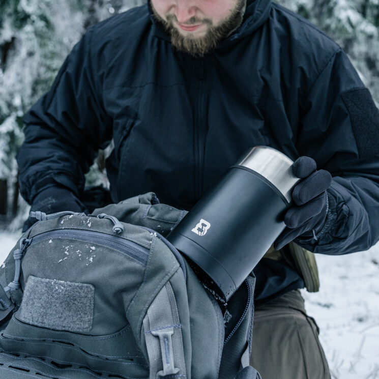 Thermos with a capacity of 1 liter designed to carry hot or cold food in the field and everyday use. Made of high quality 304 stainless steel coated with a matte black protective coating, which increases resistance to damage and corrosion. The material is BPA-free and will not affect the taste or smell of stored food. The wide filler makes it easy to fill, clean and conveniently consume food directly from the thermos.
