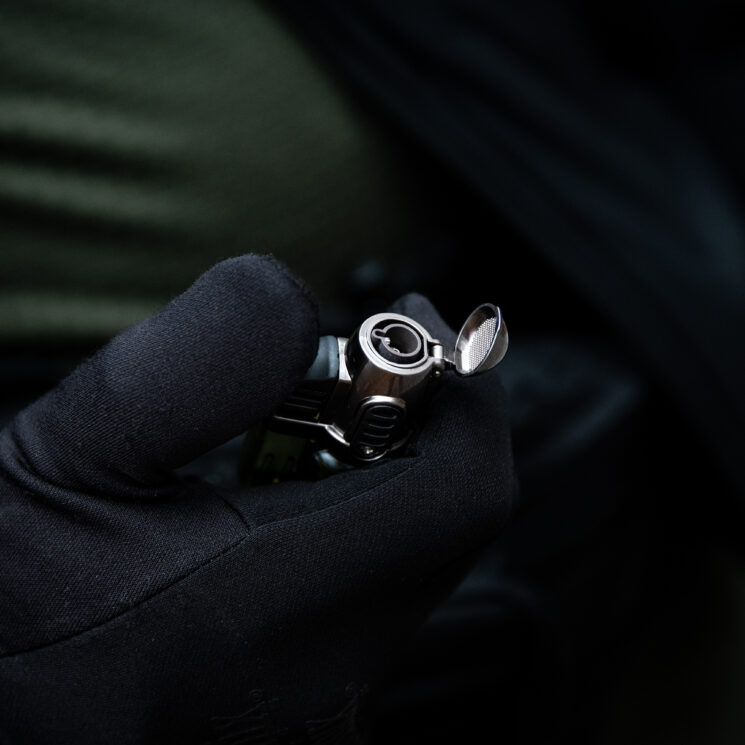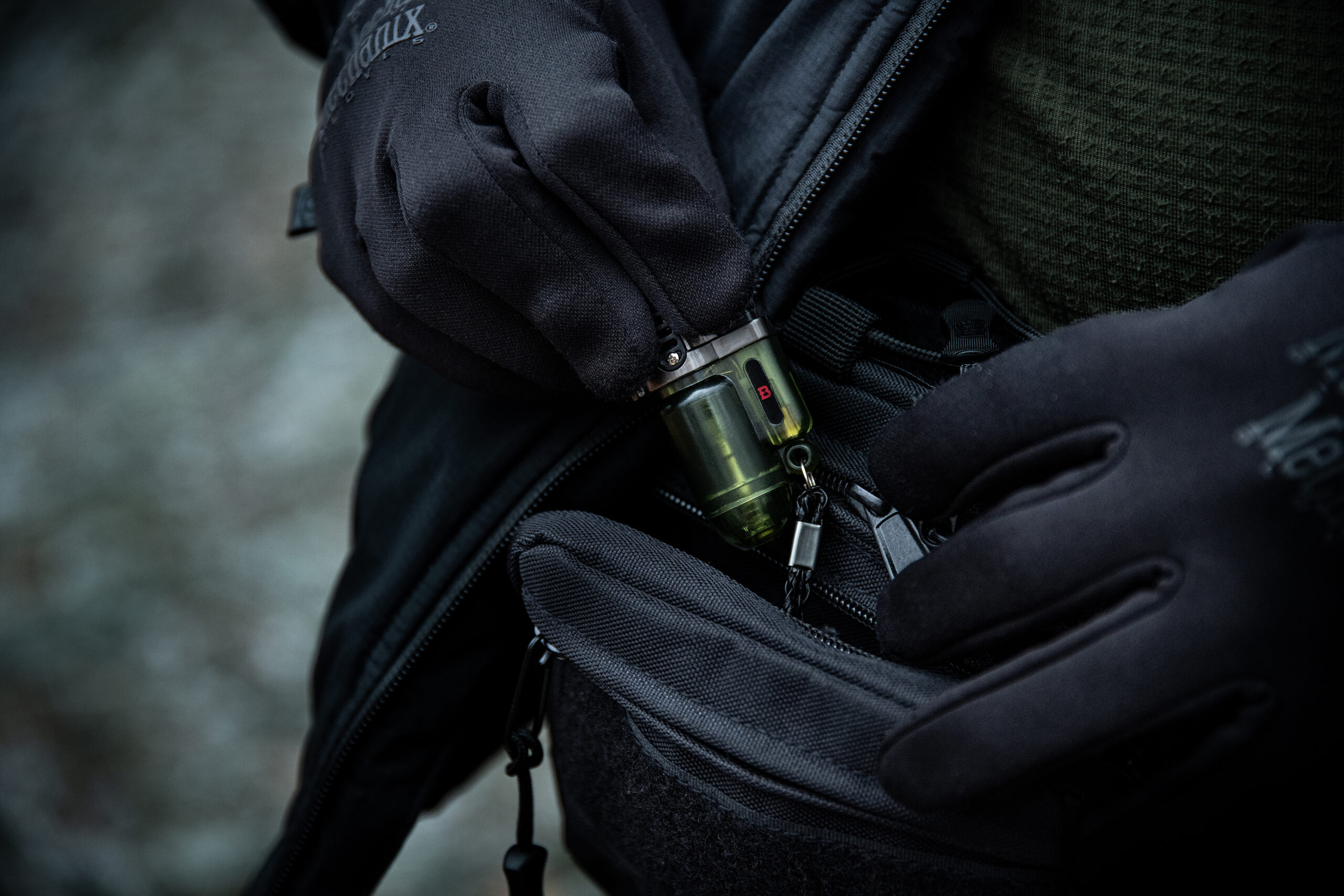 The body of the lighter is made of impact- and shatter-resistant plastic, which ensures long life even in demanding field conditions. The transparent housing allows easy monitoring of the gas level, so the user always knows when to refill. The lighter is equipped with a sliding flame lock, which protects against accidental activation and increases safety during transportation. This practical solution makes the lighter suitable for travel gear, EDC or emergency kits.